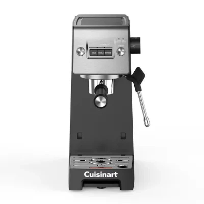 Experience the art of espresso with the Cuisinart® Espresso Bar™ Slim Espresso Machine. Effortlessly create refreshing iced drinks with the cold extraction feature, while the stainless steel bottomless portafilter lets you witness the magic of perfectly crafted espresso. Customize each sip with our easy-to-use frothing wand, adding luscious, creamy froth to your cappuccinos and lattes. Designed for convenience, it accommodates up to 20 oz. travel mugs, so you can take your creations on the go. Be your own barista and indulge in endless espresso possibilities—every sip is a delightful escape!