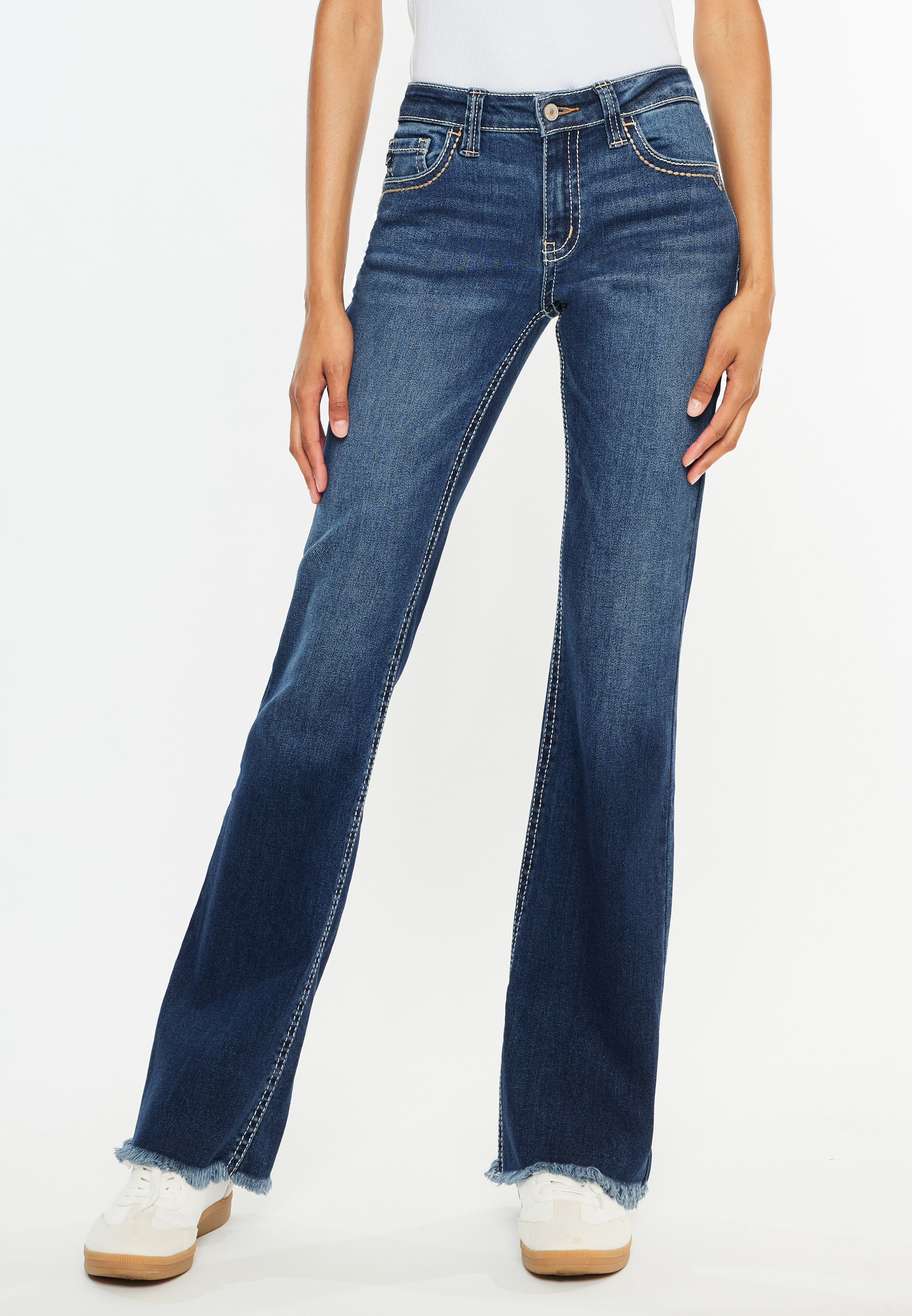 KanCan™ Curvy Mid Rise Frayed Hem Bootcut Jean