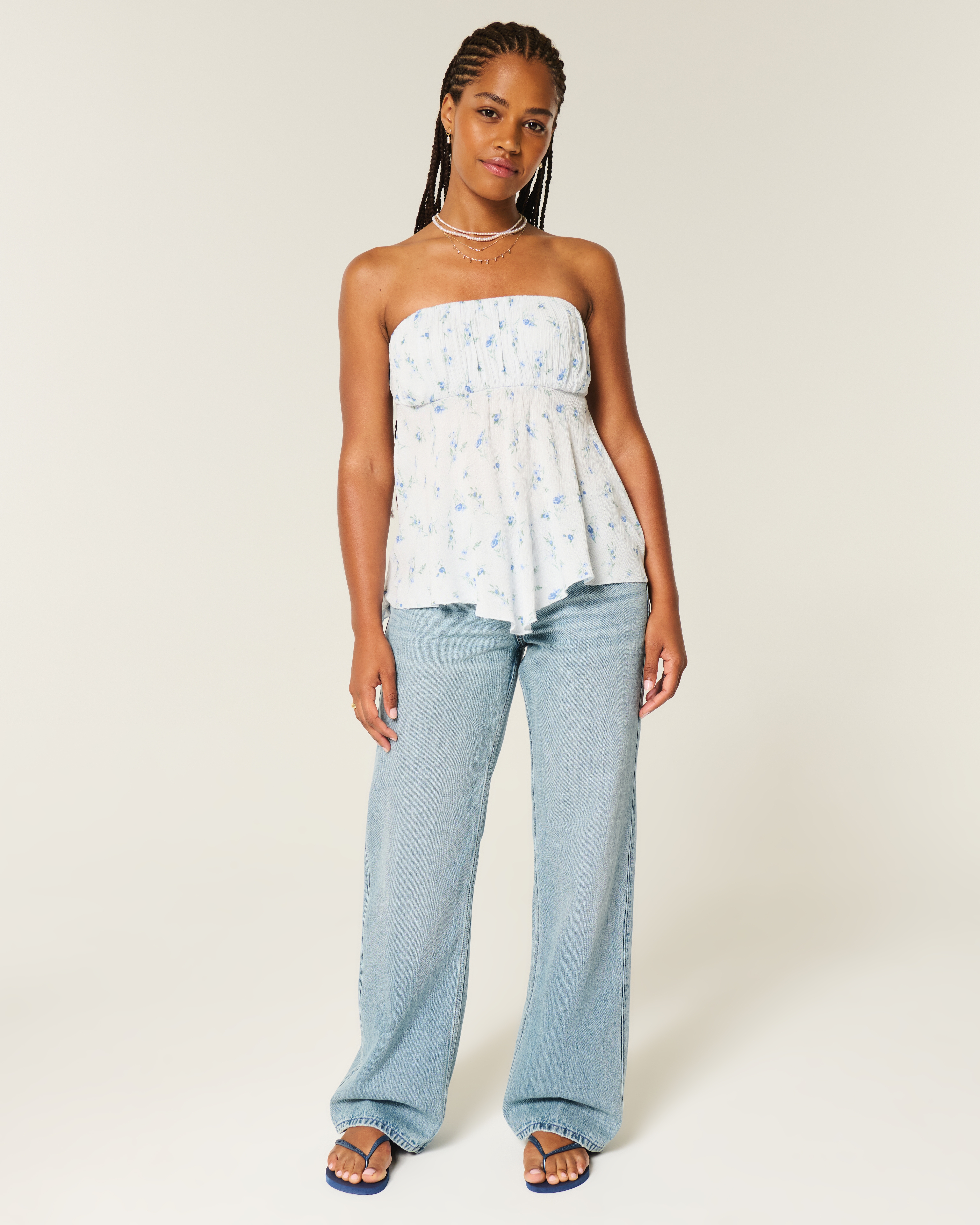 Hollister Andi Adjustable Waist Low-Rise Medium Wash Baggy Jeans