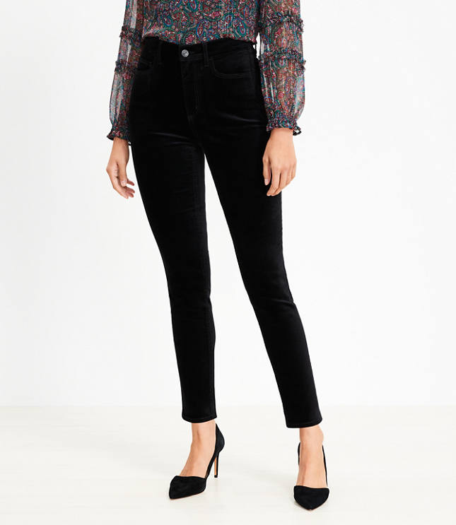 Pants Details: Front zip with button closure. Belt loops Five pocket styling., Leg Shape: Skinny - skinny from hip to leg, Rise: Sits at high waist, 11 5/8"rise, Imported:, Fit: Clean and classic with slimming interior stretch pockets, Length: Ankle length, 29"inseam, Fabrication: 80% Cotton 18 Viscose 2 Spandex, Garment Care: Machine Washable Loft Curvy Velvet Skinny Pants Size 30 Black Women's by Loft Size Regular - 30 Black Women's Skinny, Curvy Skinny Pants 80% Cotton 18% Viscose 2% Spandex Machine Washable