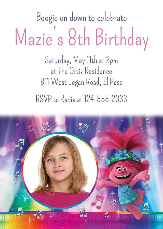 Custom Trolls World Tour Photo Invitations