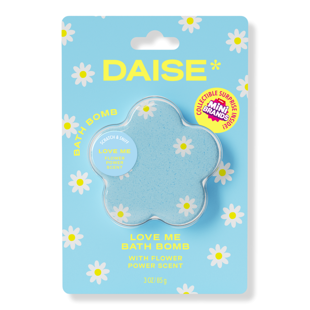 BATH BOMB LOVE ME. Benefits: Softens skin. Makes bathtime cute. Promotes relaxation and calm. Features: Love Me Fizzing bath bomb. DAISE Mini Brands at the center. Dermatologically tested. Cute and collectable. Formulated Without: Parabens. Phthalates. Sulfates. BHA/BHT. Silicones. Heavy Metals. Animal Testing.