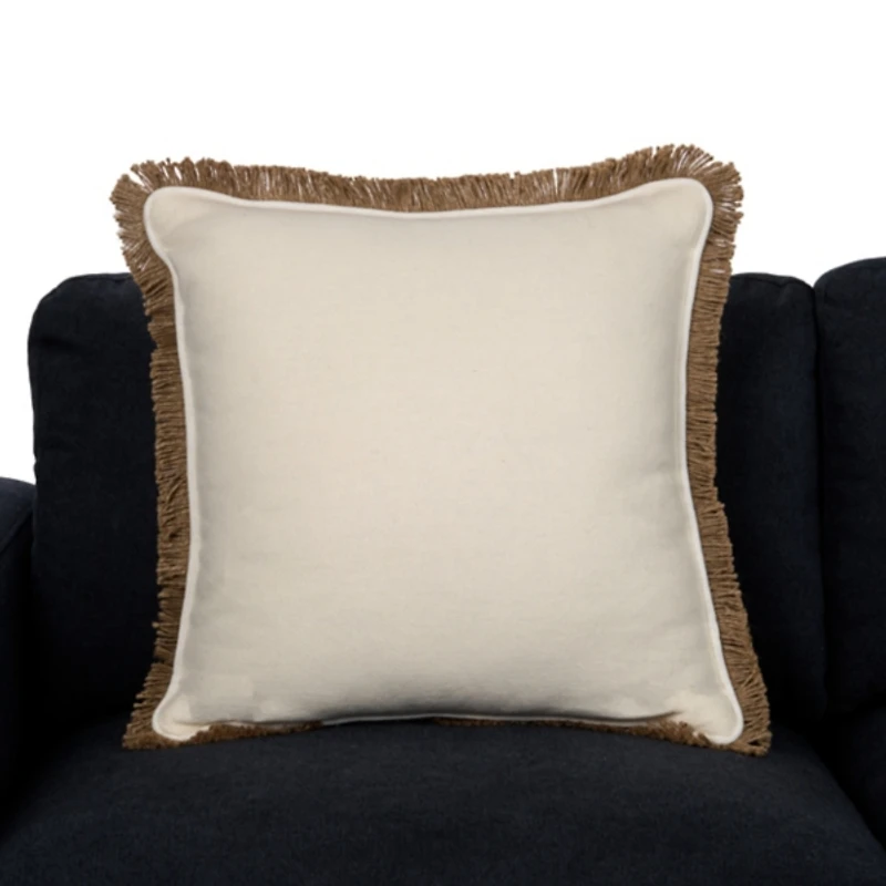 With a unique, yet understated style, this Dale Ivory Jute Fringe Pillow completes any living room. Its charming jute trim will bring a touch of natural texture to your interior! Pillow measures 22L x 22H in. Crafted of cotton with down alternative fill Solid design Hues of ivory and brown Jute fringe trim Solid ivory reverse Zipper closure Care: Spot clean only. Contact your local Kirkland's store for availability. Quantities and selection may vary by location.