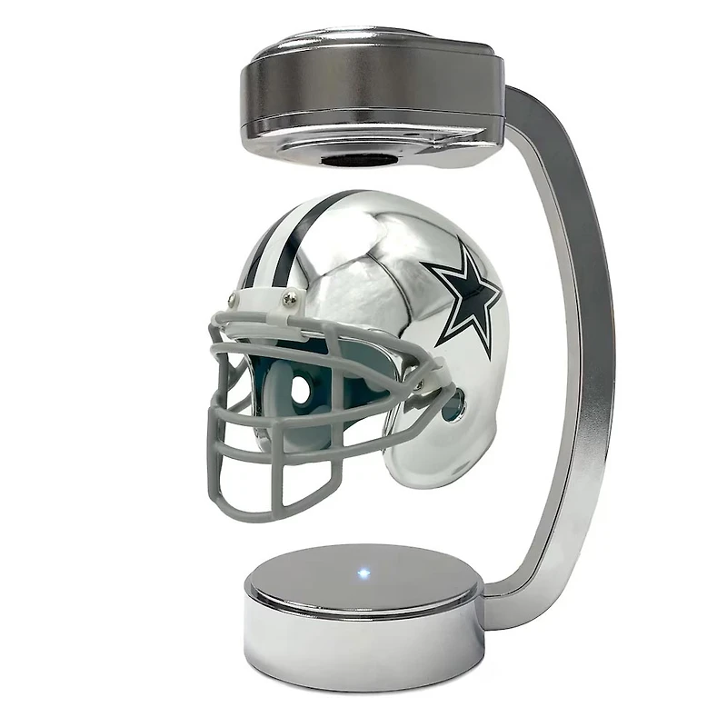 Elevate any Dallas Cowboys collection with this rotating Mini Chrome Hover Helmet. Modeled after the gear worn on the field, it features bold team graphics and an illuminated base. Whether on a desk or in a fan cave, this helmet will showcase your Dallas Cowboys fandom from all sides. Measures approx. 7" x 10.5" x 4.5".
