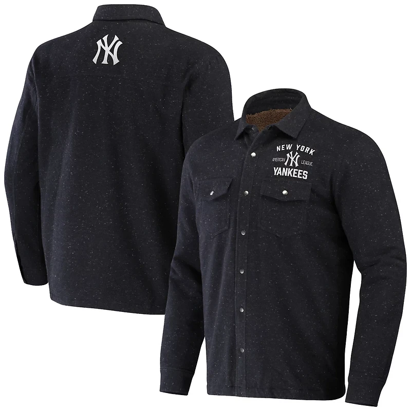 Celebrate your New York Yankees fandom in style with the Darius Rucker Collection by Fanatics Ringstop Full-Snap Shacket This heavyweight jacket is perfect for cold game days with a sherpa lining and embroidered New York Yankees graphics The snap closure at the cuffs and two chest pockets with snap closure add to the functionality of this stylish jacket Whether you're at Yankee Stadium or watching the game at home this jacket will keep you warm and stylish all season long