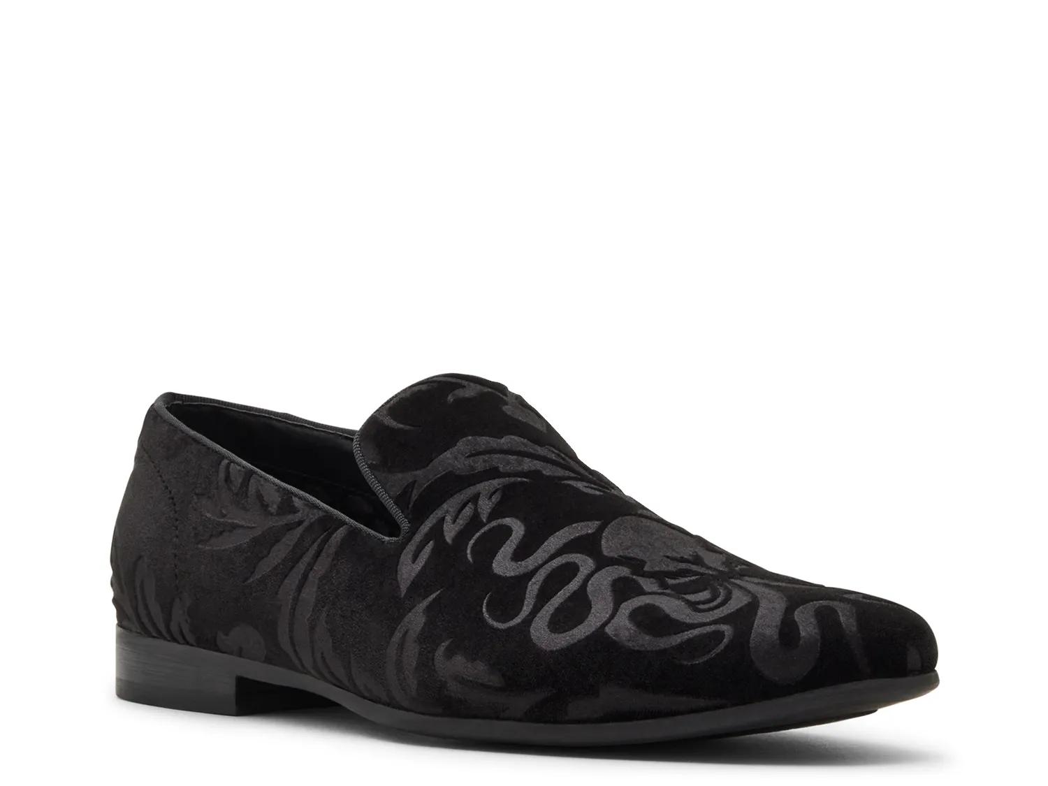 Add eye-catching style to tailored looks with the Darth loafer from Steve Madden. The velvet upper features an embossed print and a classic cut-away lip for handsome appeal.