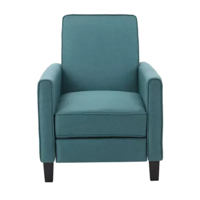 Having limited space in your living room does not mean you have to settle for inferior furniture. Our charming recliner club chair offers impressive comfort while maximizing your living space with its petite design. Featuring piped edged, smooth upholstery, and sleek tapered legs, this recliner brings an air of refinement to any room. With an air of contemporary style, our recliner offers an attractive upgrade for your home, allowing you to easily kick up your feet for a relaxing respite regardless of your space limitation.