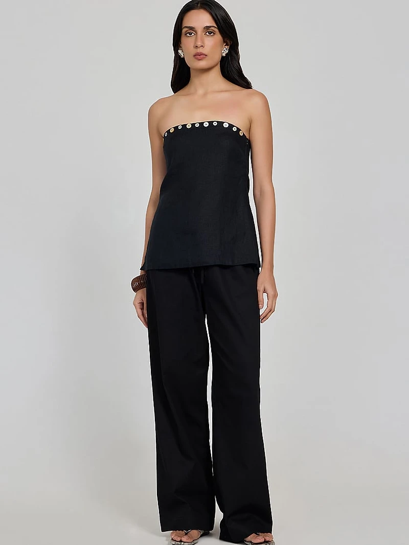 Instantly transport yourself to chic coastlines in this timeless summer staple that features shell embellishments at the neckline. Pair with the Rhode Pants for a coordinated look.