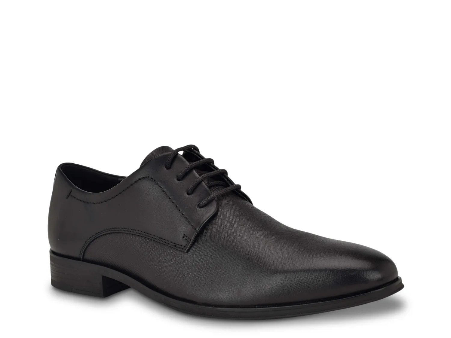 Exude classic, suave style with the Calvin Klein Dearl oxford. The lace-up displays premium leather upper that's subtly textured for a distinguished appeal. Almond toe front brings an elegant finish.