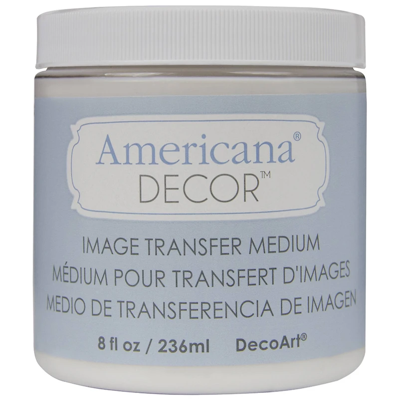 Whether personalizing your own space or creating thoughtful, custom gifts, imagery is a powerful tool. This image transfer medium allows you to incorporate whatever imagery you please to furniture, household items and other surfaces; it works best with printed images as well as laser copies. Whether your style is modern, shabby chic, vintage, bohemian or something completely unique, this medium invites you to express yourself! The permanent medium dries clear and will not change the sheen of paint. It can also be used as a topcoat for added durability. Details:8 fl. oz. (236 mL)Water-basedNontoxicLow odor
