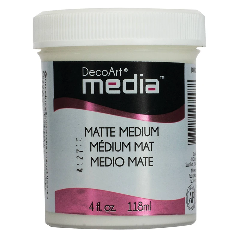 Further increase the fluidity and transparency of your fluid acrylic paint with this matte medium without altering the color or viscosity. This medium also works as a matting agent to decrease gloss sheen and can be used to sealer and finish your work. It works well as decoupage glue and as a photo transfer medium, and can be thinned with water to use as a spray fixative to prevent smudging.Details:Clear4 fl. oz.MatteWater-based and nontoxicIdeal for art, craft or DIY projects