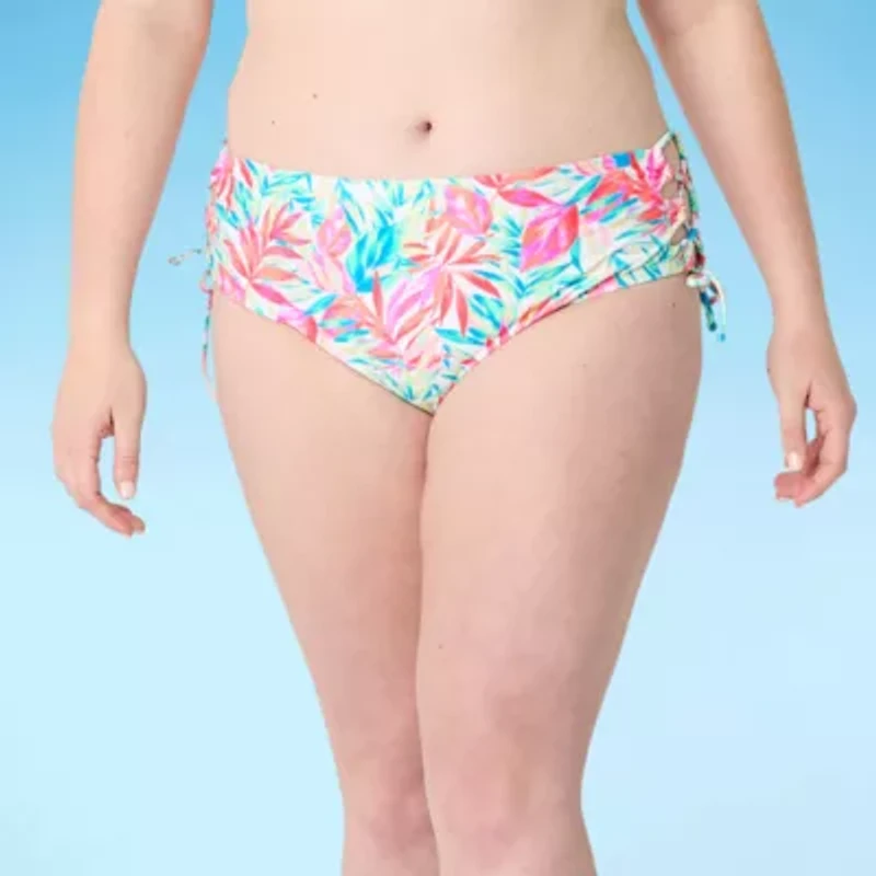 Make a style statement in this vibrant high-waist bikini swimsuit bottom from Decree's women's and junior's plus collection. It's made from stretchy tricot and features drawstrings on each side and full back coverage.