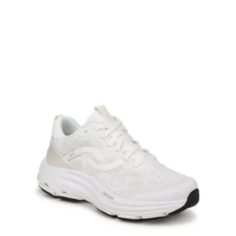 Discover the peak of Made for Women performance in these premium women’s walking sneakers with extra cushioning, energy return, and stability. BEST FOR: Fitness walking. PERFORMANCE TESTED: Proven in lab testing for shock absorption and energy return results for a walk/run capability. RYKÄQ TECH: Built for a woman’s quadricep muscle Q ANGLE with a narrower heel, roomier toe + contoured cushioning for stability. MATERIALS: Breathable engineered mesh + Low-profile padded tongue and padded heel + High-abrasion collar lining for longer wear + Breathable linings with anti-odor and anti-microbial treatment + Molded heel stabilizer. CLOSURE: Secure lace-up front with soft, brushed shoe laces + Pull tabs for easy on/off. INSOLE: Anatomical Qinsole with extra arch support + heel support and partially recycled EVA. MIDSOLE: ACTIVenergy™ EVA foam for soft and responsive midsole cushioning plus extra RE-ZORB® LITE in the forefoot and heel. OUTSOLE: Durable two-piece rubber sole for grip + Built-in compression channels for shock absorption. RYKÄSHIELD STAIN PROTECTANT: Product works best by cleaning immediately after a spill by running cold water over the shoe. Use only cold water to remove the following stains: dirt, mud, coffee, ketchup, blood. Do not wipe the shoe with any product, including water, as it can cause the stain to be absorbed into the material. Results may vary and Rykä does not guarantee that this product will work to remove any and all stains, particularly after repeated use. WEIGHT: 248 g/8.7 oz per shoe. HEEL-TO-TOE DROP: 10 mm. Lace-up closure Vietnam Imported Product Specifications 1.125 in. M Material FABRIC, RUBBER, Fabric Fabric