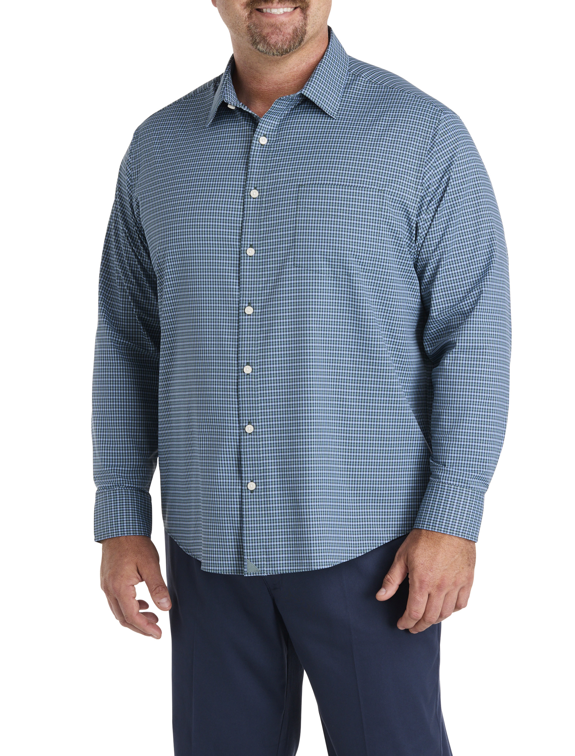 UNTUCKit perfected the untucked shirt with that just-right length and timeless style. DXL perfected the Big + Tall fit. So we’ve partnered together to let even more guys look sharp---even at their most casual. Crafted in soft and lightweight fabric blend, this versatile sport shirt is destined to become a favorite. Available in three different lengths to properly fit and flatter the proportions of Big and Tall guys, the untucked style falls at just the right length. Whether you're wearing it with a sport coat for the office or with jeans for the weekend, it's crisp, clean and cut for your perfect length. Plus, it's moisture-wicking to keep you cool and dry wrinkle resistant which makes it an easy choice for travel or everyday wear. With a comfortable fit that sits close to the body without being tight and built-in stretch for ease, it allows for the freedom to move without restriction and won't ride up, making it a smart investment for every man's collection.