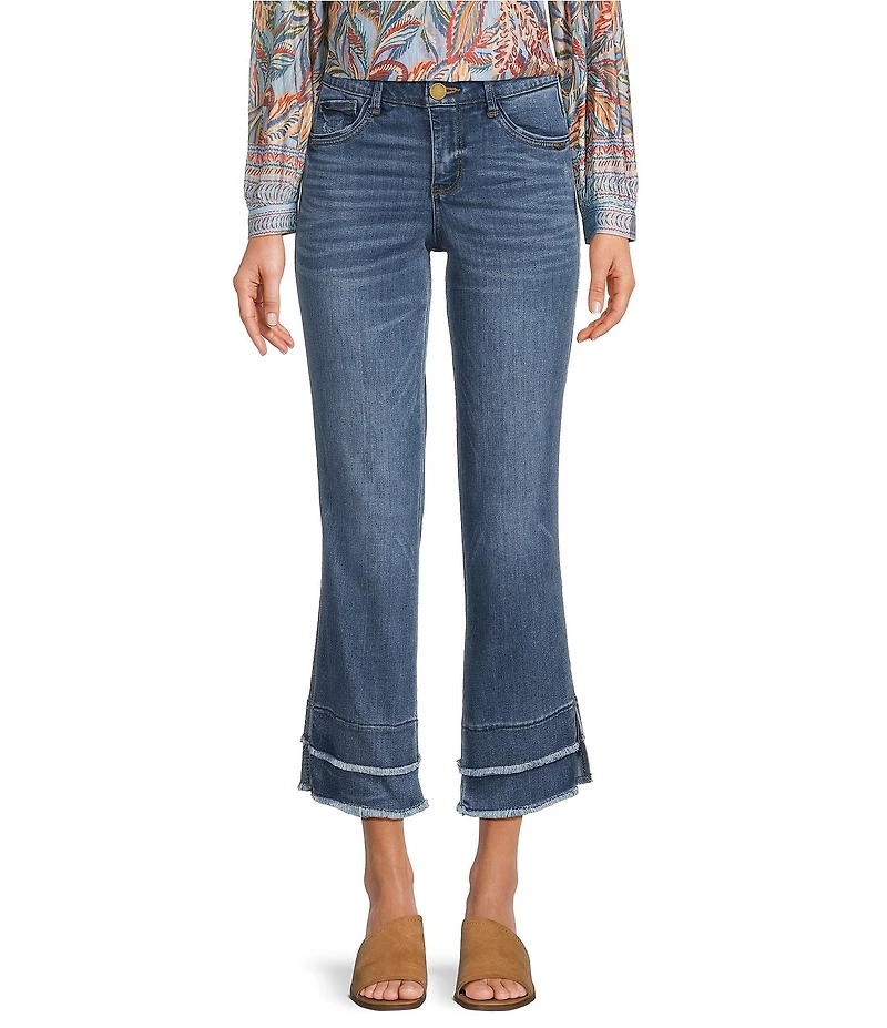 Democracy Stretch Kick Flare Double Layer Fray Hem Crop Jeans