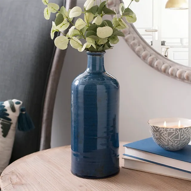 Blue Ceramic Contemporary Vase, 7" x 13"