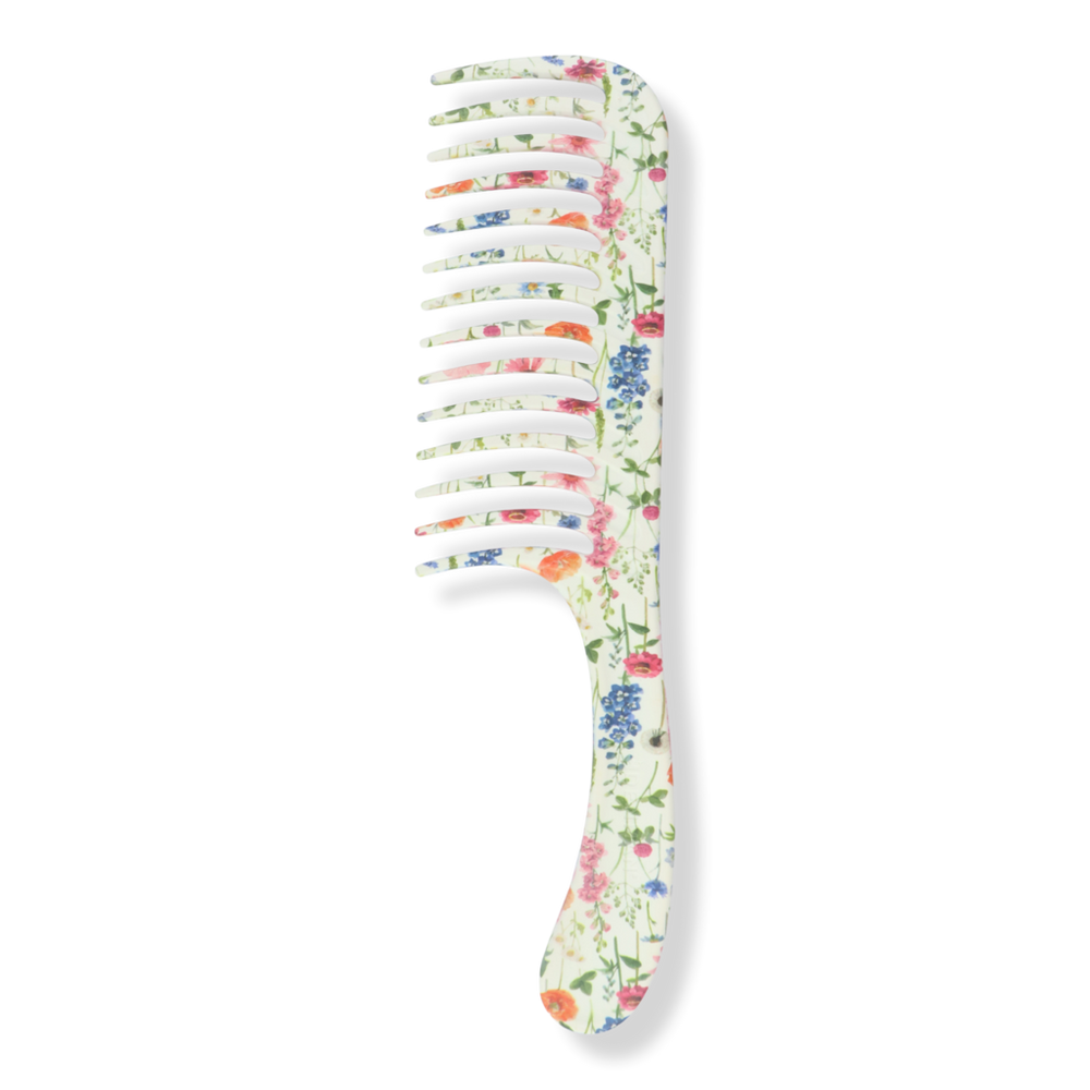 D28 WILDFLOWER COMB. Benefits: The Wide Tooth Comb is equipped with extra-wide teeth for detangling thick and naturally curly wet hair. Ideal for preventing hair damage and breakage during detangling. Great for distributing shampoo and conditioner. Features: Wide tooth comb featuring 14 teeth for detangling. The Denman Deluxe Collection incorporates a scratch-proof, durable, full wrap design. :