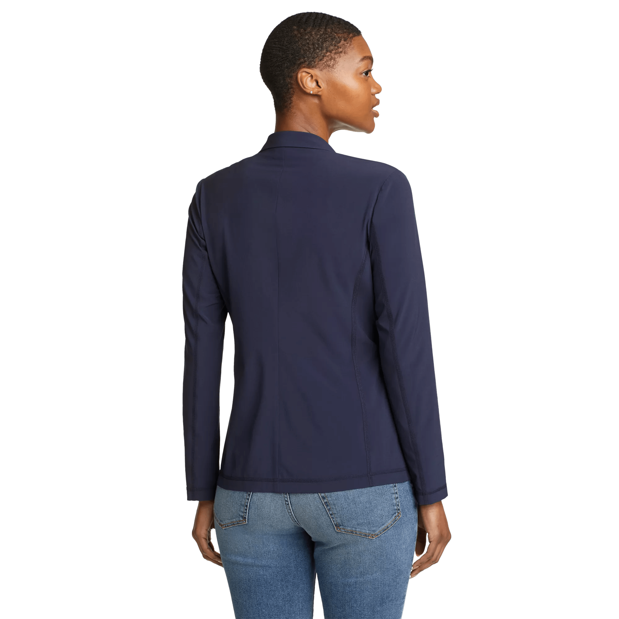 This unstructured, single-button blazer is made of a moisture-wicking polyester/spandex blend. The lightweight fabric packs easily, wears beautifully, and has built-in UPF sun protection. A classic, whether you're traveling or headed to the office!
