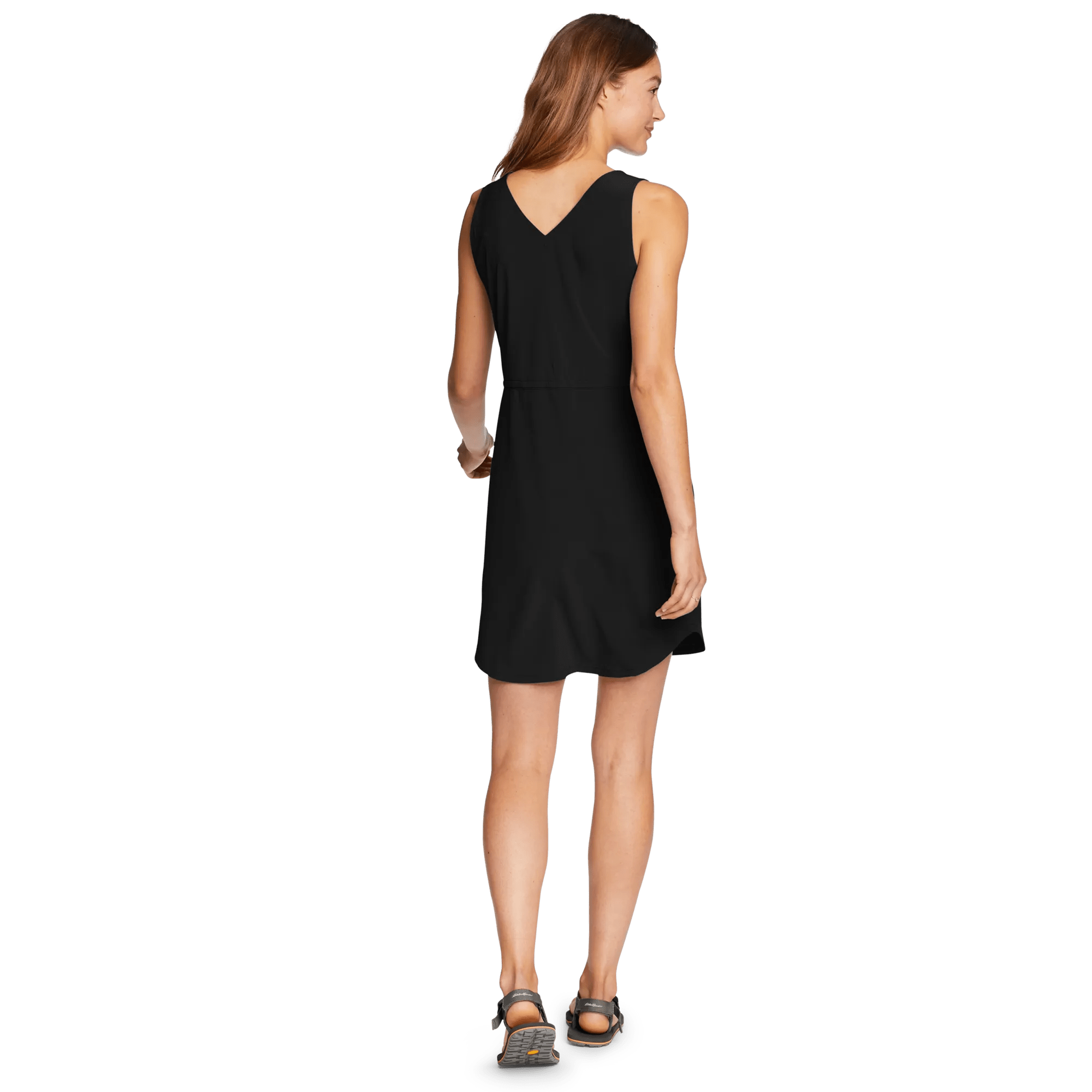 The ultimate traveler, this tank dress combines four-way stretch mobility, moisture-wicking comfort, built-in sun protection, and easy-care convenience. All in a simple, flattering style that's lightweight and easy-packing, and that wears beautifully in a wide range of situations.