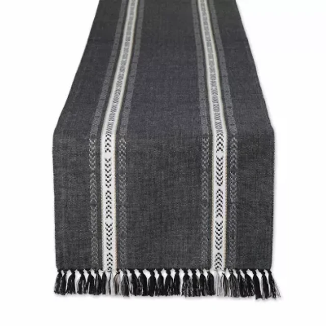 Design Imports Striped Fringe Ribbed Table Runner