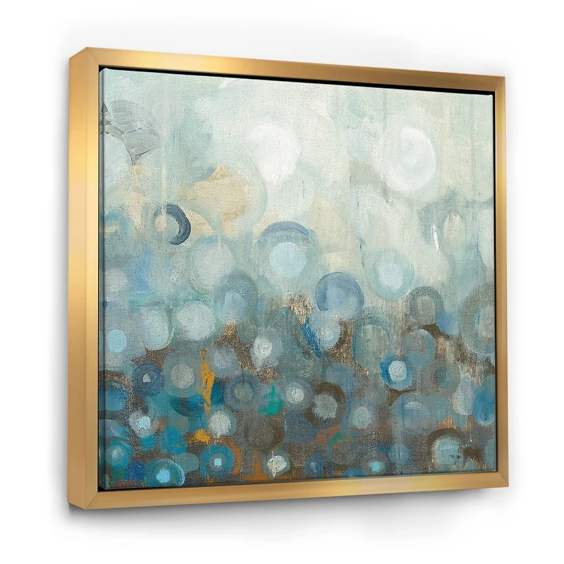 This beautiful Blue and Bronze Dots on Glass II Framed Canvas Art is printed using the highest quality fade resistant ink on canvas. Every one of our fine art giclee canvas prints is printed on premium quality canvas, using the finest quality inks which will not fade over time. Each giclee print is stretched tightly over a 1 inch wood sub frame ensuring the canvas is taught and does not buckle. The canvas print is after insert into wood floating frame. The canvas art print is gallery-wrapped (the design continues on the sides), giving it a real art gallery feel. All of our Framed canvas prints are carefully packaged with corner protection, fragile labeling and sturdy boxes to ensure a safe delivery. Every canvas print arrives ready to hang on the wall, with the hanging kits included. Features: Style: Modern & Contemporary, Transitional Subject: Abstract, Geometric Color: Blue, Brown Premium quality cotton canvas. Arrives ready to hang on the wall Easy to Hang30" x 30" - Gold Frame