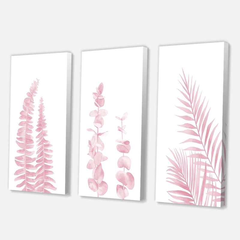 Designart - Blush Pinkeucalyptus and Palm Branches