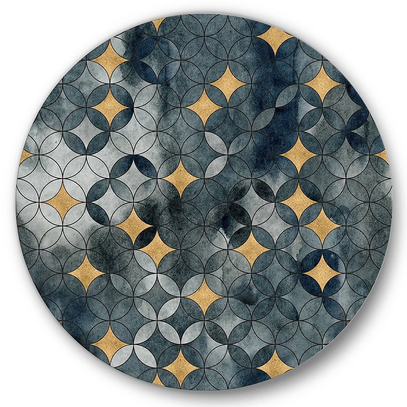 Bring Contemporary Abstraction to your home with this Grey Circle metal wall art. Available in several sizes, this Geometry Intersecting Circles WIth Golden Stars Metal Artwork makes it the focal point of any room or office. Features:Style: Modern & Contemporary, Subject: Abstract, Color: Grey White Gloss Coating ensures colors are extra vibrant with light reflection Unique Metal Wall Decor with Aluminum grade sheet metal 1-inch mounting frame gives the illusion of artwork floating on the wall Mounting brackets and instructions are included High quality digital images are created directly into a glossy aluminum panel, producing a stunning and captivating print in the glossy finish of the metal Water, fire, and scratch resistant HD aluminum panels Looks better than any photo paper and guaranteed to last at least 20 years Easy to clean with a microfiber cloth Colors are far superior to regular canvas art Fade resistant Water resistant UV-coated finsih Frameless Hangers on back Easy to hang See Options for available sizes