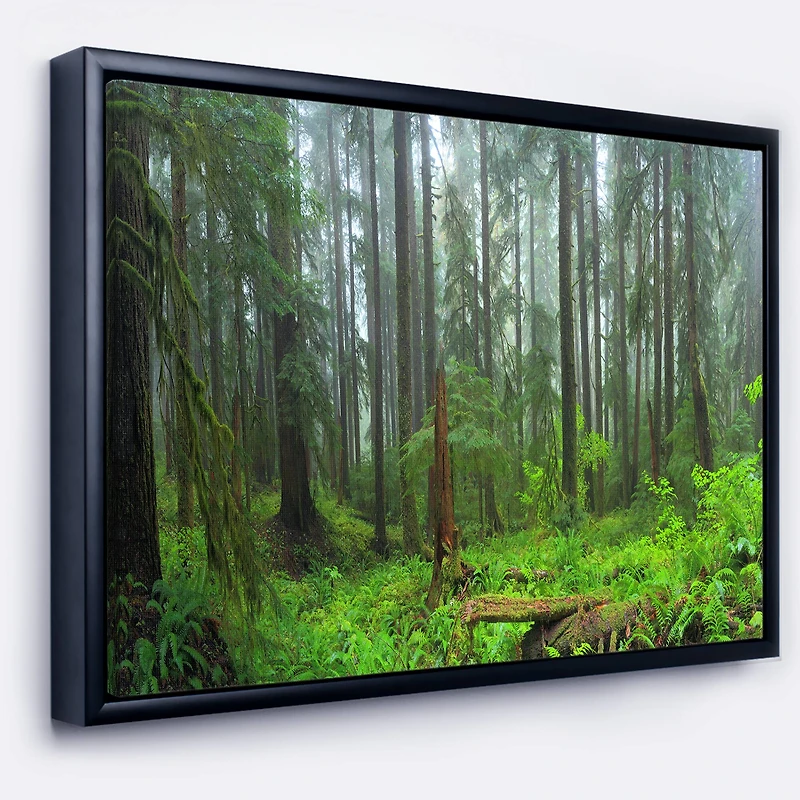 This beautiful Hoh Rain Forest Framed Canvas Art is printed using the highest quality fade resistant ink on canvas. Every one of our fine art giclee canvas prints is printed on premium quality canvas, using the finest quality inks which will not fade over time. Each giclee print is stretched tightly over a 1 inch wood sub frame ensuring the canvas is taught and does not The canvas print is after insert into wood floating frame. The canvas art print is gallery-wrapped (the design continues on the sides) , giving it a real art gallery feel. All of our Framed canvas prints are carefully packaged with corner protection, fragile labeling and sturdy boxes to ensure a safe delivery. Every canvas print arrives ready to hang on the wall, with the hanging kits included. Features:Style: Traditional Subject: Landscapes, Country Charm, Photography Color: Green Premium quality cotton canvas. Arrives ready to hang on the wall Easy to hang