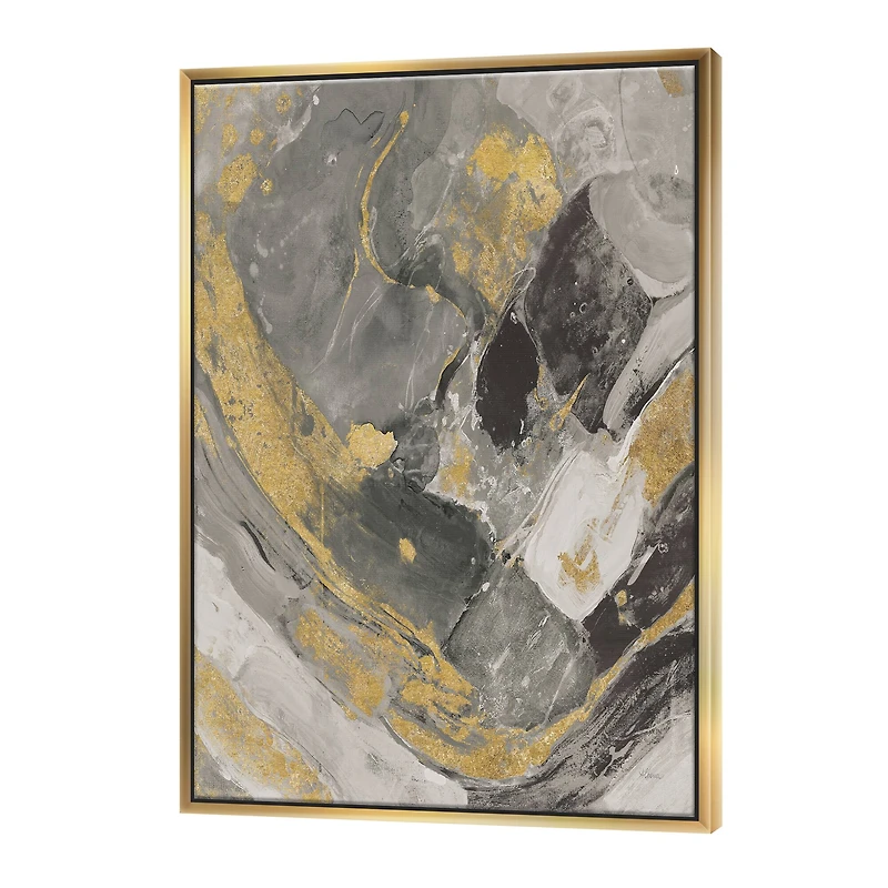 This beautiful Marble Gold and Black II Framed Canvas Art is printed using the highest quality fade resistant ink on canvas. Every one of our fine art giclee canvas prints is printed on premium quality canvas, using the finest quality inks which will not fade over time. Each giclee print is stretched tightly over a 1 inch wood sub frame ensuring the canvas is taught and does not The canvas print is after insert into wood floating frame. The canvas art print is gallery-wrapped (the design continues on the sides) , giving it a real art gallery feel. All of our Framed canvas prints are carefully packaged with corner protection, fragile labeling and sturdy boxes to ensure a safe delivery. Every canvas print arrives ready to hang on the wall, with the hanging kits included. Features:Style: Modern & Contemporary, Transitional Subject: Abstract, Cottage Color: Gold, Grey Premium quality cotton canvas. Arrives ready to hang on the wall Easy to hang