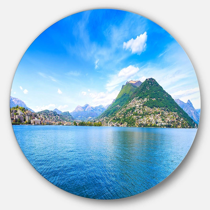 Bring Contemporary Abstraction to your home with this Blue Circle metal wall art. Available in several sizes, this Lugano Lake Ticino Panorama Metal Artwork makes it the focal point of any room or office. Features:Style: Nautical & Coastal Subject: Landscapes, Country Charm, photography Color: Blue White Gloss Coating ensures colors are extra vibrant with light reflection Unique Metal Wall Decor with Aluminum grade sheet metal 1-inch mounting frame gives the illusion of artwork floating on the wall Mounting brackets and instructions are included High quality digital images are created directly into a glossy aluminum panel, producing a stunning and captivating print in the glossy finish of the metal Water, fire, and scratch resistant HD aluminum panels Looks better than any photo paper and guaranteed to last at least 20 years Easy to clean with a microfiber cloth Colors are far superior to regular canvas art Fade resistant Water resistant UV-coated finsih Frameless Hangers on back Easy to hang See Options for available sizes