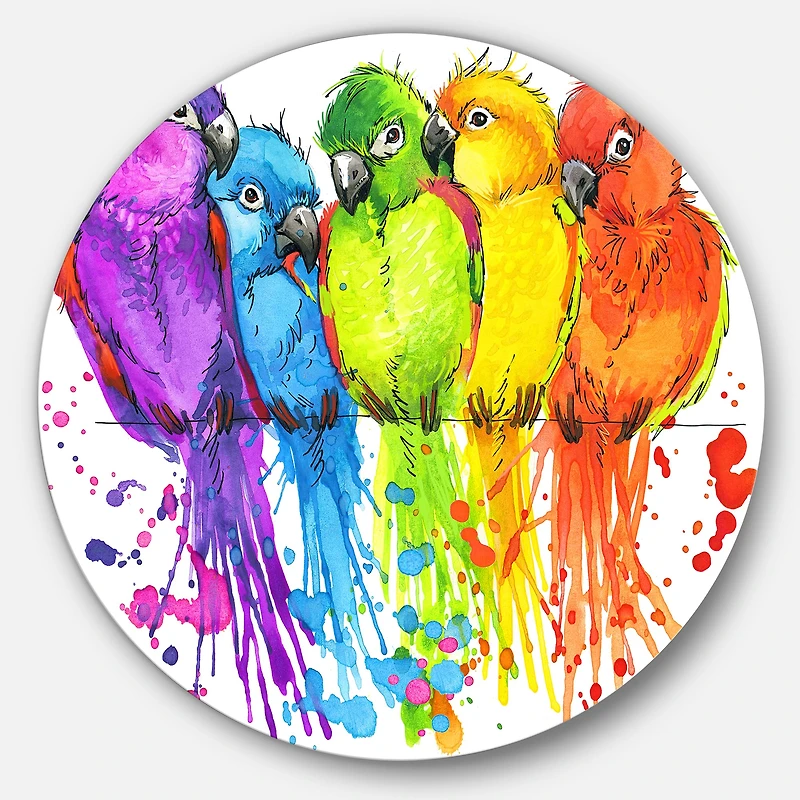 Bring Contemporary Abstraction to your home with this Green Circle metal wall art. Available in several sizes, this Colorful Parrots Illustration Metal Artwork makes it the focal point of any room or office. Features:Style: Traditional Subject: Animals, Country Charm, Photography Color: Green White Gloss Coating ensures colors are extra vibrant with light reflection Unique Metal Wall Decor with Aluminum grade sheet metal 1-inch mounting frame gives the illusion of artwork floating on the wall Mounting brackets and instructions are included High quality digital images are created directly into a glossy aluminum panel, producing a stunning and captivating print in the glossy finish of the metal Water, fire, and scratch resistant HD aluminum panels Looks better than any photo paper and guaranteed to last at least 20 years Easy to clean with a microfiber cloth Colors are far superior to regular canvas art Fade resistant Water resistant UV-coated finsih Frameless Hangers on back Easy to hang See Options for available sizes