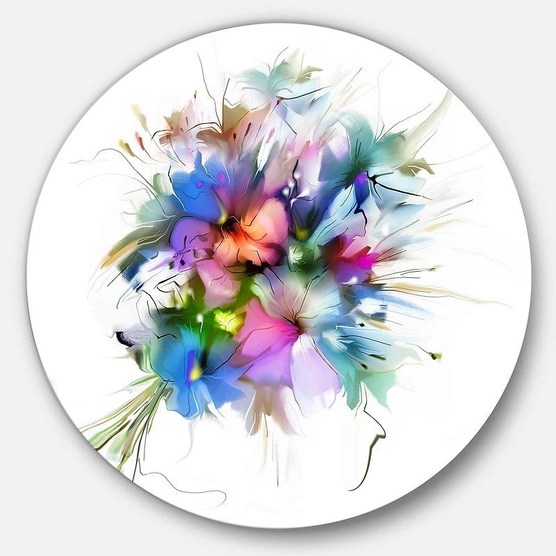Bring Contemporary Abstraction to your home with this Blue Circle metal wall art. Available in several sizes, this Summer Colorful Flowers Metal Artwork makes it the focal point of any room or office. Features:Style: Floral Subject: Floral, Landscapes, Country Charm Color: Blue White Gloss Coating ensures colors are extra vibrant with light reflection Unique Metal Wall Decor with Aluminum grade sheet metal 1-inch mounting frame gives the illusion of artwork floating on the wall Mounting brackets and instructions are included High quality digital images are created directly into a glossy aluminum panel, producing a stunning and captivating print in the glossy finish of the metal Water, fire, and scratch resistant HD aluminum panels Looks better than any photo paper and guaranteed to last at least 20 years Easy to clean with a microfiber cloth Colors are far superior to regular canvas art Fade resistant Water resistant UV-coated finsih Frameless Hangers on back Easy to hang See Options for available sizes