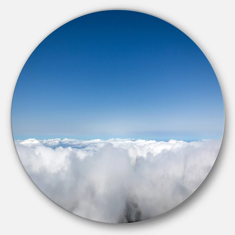 Bring Contemporary Abstraction to your home with this Blue Circle metal wall art. Available in several sizes, this Aerial View of Sky over Clouds Metal Artwork makes it the focal point of any room or office. Features:Style: Traditional Subject: Landscapes, Country Charm, photography Color: Blue White Gloss Coating ensures colors are extra vibrant with light reflection Unique Metal Wall Decor with Aluminum grade sheet metal 1-inch mounting frame gives the illusion of artwork floating on the wall Mounting brackets and instructions are included High quality digital images are created directly into a glossy aluminum panel, producing a stunning and captivating print in the glossy finish of the metal Water, fire, and scratch resistant HD aluminum panels Looks better than any photo paper and guaranteed to last at least 20 years Easy to clean with a microfiber cloth Colors are far superior to regular canvas art Fade resistant Water resistant UV-coated finsih Frameless Hangers on back Easy to hang See Options for available sizes
