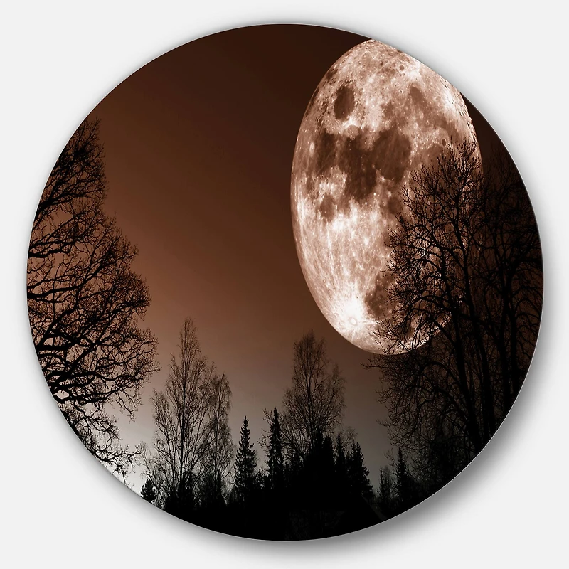 Bring Contemporary Abstraction to your home with this Red Circle metal wall art. Available in several size, this Red Moon Rise over Dark Trees Metal Artwork makes it the focal point of any room or office.Features:Style: TraditionalSubject: Landscapes, Country Charm, photographyColor: RedWhite Gloss Coating ensures colors are extra vibrant with light reflectionUnique Metal Wall Decor with Aluminum grade sheet metal1-inch mounting frame gives the illusion of artwork floating on the wallMounting brackets and instructions are includedHigh quality digital images are created directly into a glossy aluminum panel, producing a stunning and captivating print in the glossy finish of the metalWater, fire, and scratch resistant HD aluminum panelsLooks better than any photo paper and guaranteed to last at least 20 yearsEasy to clean with a microfiber clothColors are far superior to regular canvas artFade resistantWater resistantUV-coated finsihFramelessHangers on backEasy to hangAvailable in multiple sizes