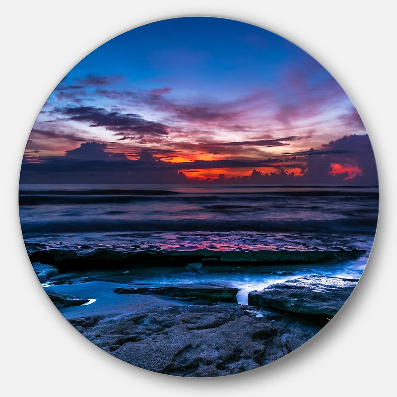 Bring Contemporary Abstraction to your home with this Blue Circle metal wall art. Available in several sizes, this Exotic Dark Blue Coquina Dawn Metal Artwork makes it the focal point of any room or office. Features:Style: Nautical & Coastal Subject: Sea & Shore, Nautical, Landscapes Color: Blue White Gloss Coating ensures colors are extra vibrant with light reflection Unique Metal Wall Decor with Aluminum grade sheet metal 1-inch mounting frame gives the illusion of artwork floating on the wall Mounting brackets and instructions are included High quality digital images are created directly into a glossy aluminum panel, producing a stunning and captivating print in the glossy finish of the metal Water, fire, and scratch resistant HD aluminum panels Looks better than any photo paper and guaranteed to last at least 20 years Easy to clean with a microfiber cloth Colors are far superior to regular canvas art Fade resistant Water resistant UV-coated finsih Frameless Hangers on back Easy to hang See Options for available sizes