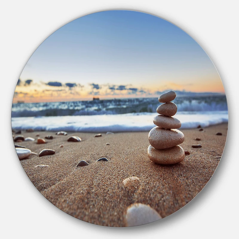 Bring Contemporary Abstraction to your home with this Brown Circle metal wall art. Available in several size, this Stones Balance on Sandy Beach Metal Artwork makes it the focal point of any room or office.Features:Style: Nautical & CoastalSubject: Sea & Shore, Nautical, LandscapesColor: BrownWhite Gloss Coating ensures colors are extra vibrant with light reflectionUnique Metal Wall Decor with Aluminum grade sheet metal1-inch mounting frame gives the illusion of artwork floating on the wallMounting brackets and instructions are includedHigh quality digital images are created directly into a glossy aluminum panel, producing a stunning and captivating print in the glossy finish of the metalWater, fire, and scratch resistant HD aluminum panelsLooks better than any photo paper and guaranteed to last at least 20 yearsEasy to clean with a microfiber clothColors are far superior to regular canvas artFade resistantWater resistantUV-coated finsihFramelessHangers on backEasy to hangAvailable in multiple sizes