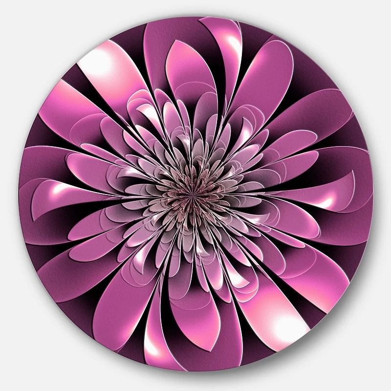 Bring Contemporary Abstraction to your home with this Purple Circle metal wall art. Available in several sizes, this Glittering Lush Purple Fractal Flower Metal Artwork makes it the focal point of any room or office. Features:Style: Floral Subject: Floral, Landscapes, Country Charm Color: Purple White Gloss Coating ensures colors are extra vibrant with light reflection Unique Metal Wall Decor with Aluminum grade sheet metal 1-inch mounting frame gives the illusion of artwork floating on the wall Mounting brackets and instructions are included High quality digital images are created directly into a glossy aluminum panel, producing a stunning and captivating print in the glossy finish of the metal Water, fire, and scratch resistant HD aluminum panels Looks better than any photo paper and guaranteed to last at least 20 years Easy to clean with a microfiber cloth Colors are far superior to regular canvas art Fade resistant Water resistant UV-coated finsih Frameless Hangers on back Easy to hang See Options for available sizes