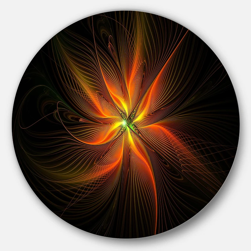Bring Contemporary Abstraction to your home with this Gold Circle metal wall art. Available in several size, this Shiny Golden Yellow Fractal Flower on Black Metal Artwork makes it the focal point of any room or office.Features:Style: Modern & ContemporarySubject: Floral, Landscapes, Country CharmColor: GoldWhite Gloss Coating ensures colors are extra vibrant with light reflectionUnique Metal Wall Decor with Aluminum grade sheet metal1-inch mounting frame gives the illusion of artwork floating on the wallMounting brackets and instructions are includedHigh quality digital images are created directly into a glossy aluminum panel, producing a stunning and captivating print in the glossy finish of the metalWater, fire, and scratch resistant HD aluminum panelsLooks better than any photo paper and guaranteed to last at least 20 yearsEasy to clean with a microfiber clothColors are far superior to regular canvas artFade resistantWater resistantUV-coated finsihFramelessHangers on backEasy to hangAvailable in multiple sizes