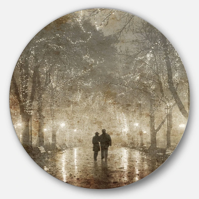 Bring Contemporary Abstraction to your home with this Multi-Color Circle metal wall art. Available in several sizes, this Couple Walking in Night Lights Metal Artwork makes it the focal point of any room or office. Features:Style: Landscapes Subject: Landscapes, Country Charm, photography Color: Multi-Color White Gloss Coating ensures colors are extra vibrant with light reflection Unique Metal Wall Decor with Aluminum grade sheet metal 1-inch mounting frame gives the illusion of artwork floating on the wall Mounting brackets and instructions are included High quality digital images are created directly into a glossy aluminum panel, producing a stunning and captivating print in the glossy finish of the metal Water, fire, and scratch resistant HD aluminum panels Looks better than any photo paper and guaranteed to last at least 20 years Easy to clean with a microfiber cloth Colors are far superior to regular canvas art Fade resistant Water resistant UV-coated finsih Frameless Hangers on back Easy to hang See Options for available sizes