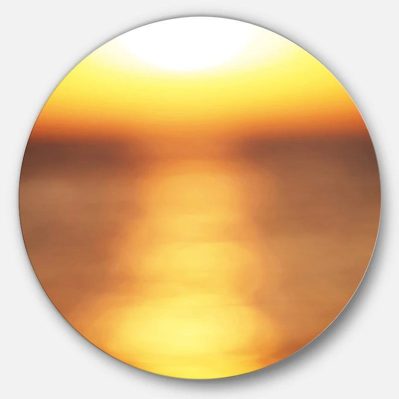 Bring Contemporary Abstraction to your home with this Yellow Circle metal wall art. Available in several sizes, this Abstract Yellow Sunset Reflection Metal Artwork makes it the focal point of any room or office. Features:Style: Landscapes Subject: Landscapes, Country Charm, photography Color: Yellow White Gloss Coating ensures colors are extra vibrant with light reflection Unique Metal Wall Decor with Aluminum grade sheet metal 1-inch mounting frame gives the illusion of artwork floating on the wall Mounting brackets and instructions are included High quality digital images are created directly into a glossy aluminum panel, producing a stunning and captivating print in the glossy finish of the metal Water, fire, and scratch resistant HD aluminum panels Looks better than any photo paper and guaranteed to last at least 20 years Easy to clean with a microfiber cloth Colors are far superior to regular canvas art Fade resistant Water resistant UV-coated finsih Frameless Hangers on back Easy to hang See Options for available sizes