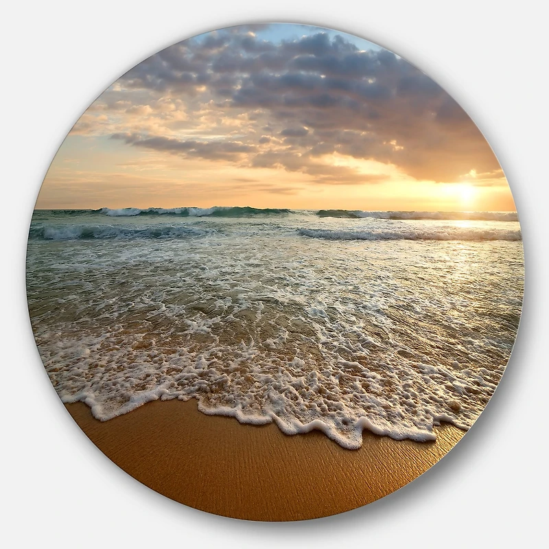 Bring Contemporary Abstraction to your home with this Blue Circle metal wall art. Available in several sizes, this Bright Cloudy Sunset in Calm Ocean Metal Artwork makes it the focal point of any room or office. Features:Style: Nautical & Coastal Subject: Sea & Shore, Nautical, Landscapes Color: Blue White Gloss Coating ensures colors are extra vibrant with light reflection Unique Metal Wall Decor with Aluminum grade sheet metal 1-inch mounting frame gives the illusion of artwork floating on the wall Mounting brackets and instructions are included High quality digital images are created directly into a glossy aluminum panel, producing a stunning and captivating print in the glossy finish of the metal Water, fire, and scratch resistant HD aluminum panels Looks better than any photo paper and guaranteed to last at least 20 years Easy to clean with a microfiber cloth Colors are far superior to regular canvas art Fade resistant Water resistant UV-coated finsih Frameless Hangers on back Easy to hang See Options for available sizes