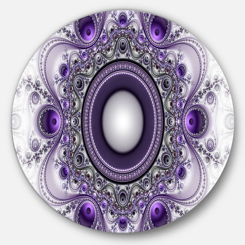 Bring Contemporary Abstraction to your home with this Purple Circle metal wall art. Available in several sizes, this Purple Fractal Pattern with Circles Metal Artwork makes it the focal point of any room or office. Features:Style: Modern & Contemporary Subject: Abstract, Impressionism, Geometric Color: Purple White Gloss Coating ensures colors are extra vibrant with light reflection Unique Metal Wall Decor with Aluminum grade sheet metal 1-inch mounting frame gives the illusion of artwork floating on the wall Mounting brackets and instructions are included High quality digital images are created directly into a glossy aluminum panel, producing a stunning and captivating print in the glossy finish of the metal Water, fire, and scratch resistant HD aluminum panels Looks better than any photo paper and guaranteed to last at least 20 years Easy to clean with a microfiber cloth Colors are far superior to regular canvas art Fade resistant Water resistant UV-coated finsih Frameless Hangers on back Easy to hang See Options for available sizes