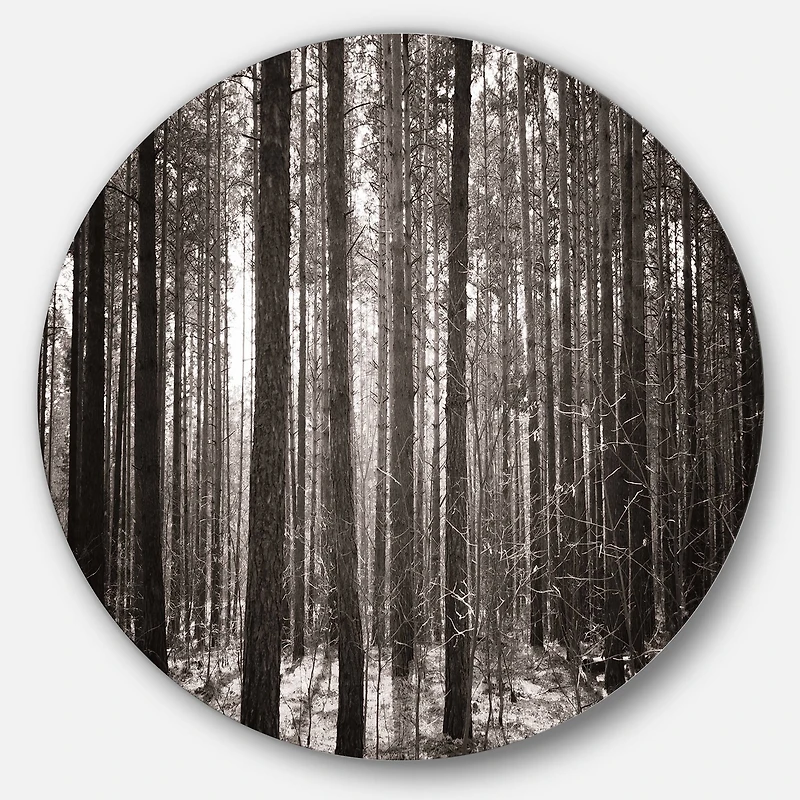 Bring Contemporary Abstraction to your home with this Grey Circle metal wall art. Available in several sizes, this Beautiful Misty Forest in the Autumn Metal Artwork makes it the focal point of any room or office. Features:Style: Traditional, Landscapes, Forest Subject: Landscapes, Country Charm, Photography Color: Grey White Gloss Coating ensures colors are extra vibrant with light reflection Unique Metal Wall Decor with Aluminum grade sheet metal 1-inch mounting frame gives the illusion of artwork floating on the wall Mounting brackets and instructions are included High quality digital images are created directly into a glossy aluminum panel, producing a stunning and captivating print in the glossy finish of the metal Water, fire, and scratch resistant HD aluminum panels Looks better than any photo paper and guaranteed to last at least 20 years Easy to clean with a microfiber cloth Colors are far superior to regular canvas art Fade resistant Water resistant UV-coated finsih Frameless Hangers on back Easy to hang See Options for available sizes