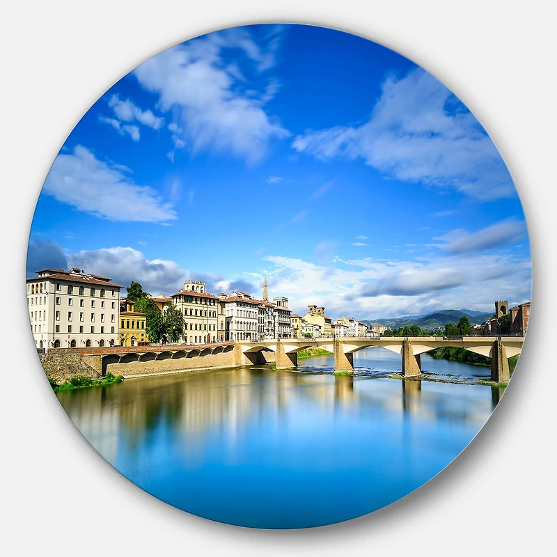 Bring Contemporary Abstraction to your home with this Multi-Color Circle metal wall art. Available in several size, this Ponte Alle Grazie Florence Italy Metal Artwork makes it the focal point of any room or office.Features:Style: Nautical & CoastalSubject: Sea & Shore, Nautical, LandscapesColor: Multi-ColorWhite Gloss Coating ensures colors are extra vibrant with light reflectionUnique Metal Wall Decor with Aluminum grade sheet metal1-inch mounting frame gives the illusion of artwork floating on the wallMounting brackets and instructions are includedHigh quality digital images are created directly into a glossy aluminum panel, producing a stunning and captivating print in the glossy finish of the metalWater, fire, and scratch resistant HD aluminum panelsLooks better than any photo paper and guaranteed to last at least 20 yearsEasy to clean with a microfiber clothColors are far superior to regular canvas artFade resistantWater resistantUV-coated finsihFramelessHangers on backEasy to hangAvailable in multiple sizes