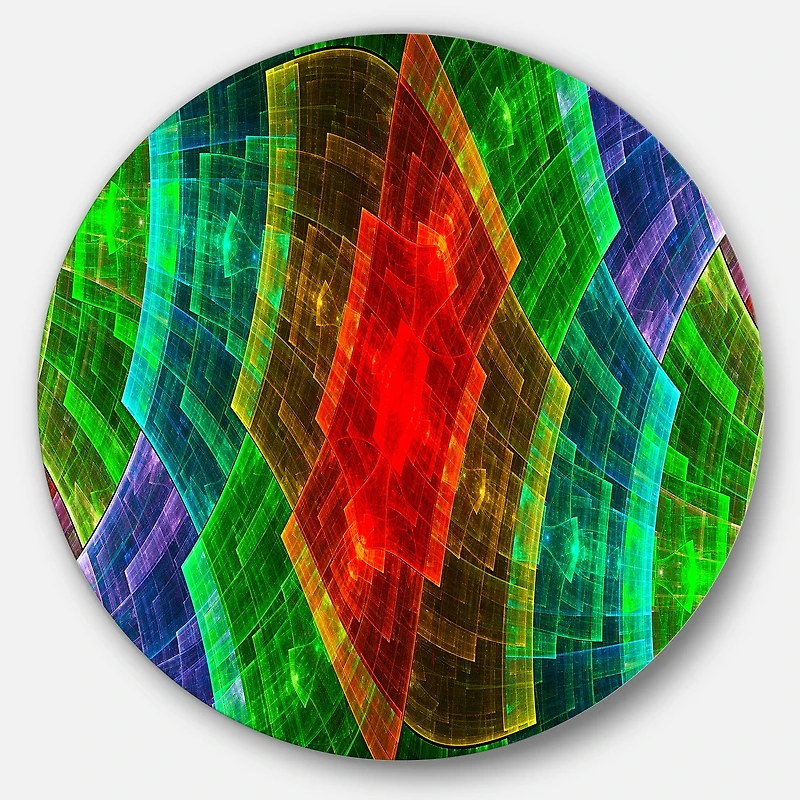 Bring Contemporary Abstraction to your home with this Multi-Color Circle metal wall art. Available in several size, this Multi Color Psychedelic Fractal Metal Grid Metal Artwork makes it the focal point of any room or office.Features:Style: Modern & ContemporarySubject: Abstract, Impressionism, GeometricColor: Multi-ColorWhite Gloss Coating ensures colors are extra vibrant with light reflectionUnique Metal Wall Decor with Aluminum grade sheet metal1-inch mounting frame gives the illusion of artwork floating on the wallMounting brackets and instructions are includedHigh quality digital images are created directly into a glossy aluminum panel, producing a stunning and captivating print in the glossy finish of the metalWater, fire, and scratch resistant HD aluminum panelsLooks better than any photo paper and guaranteed to last at least 20 yearsEasy to clean with a microfiber clothColors are far superior to regular canvas artFade resistantWater resistantUV-coated finsihFramelessHangers on backEasy to hangAvailable in multiple sizes