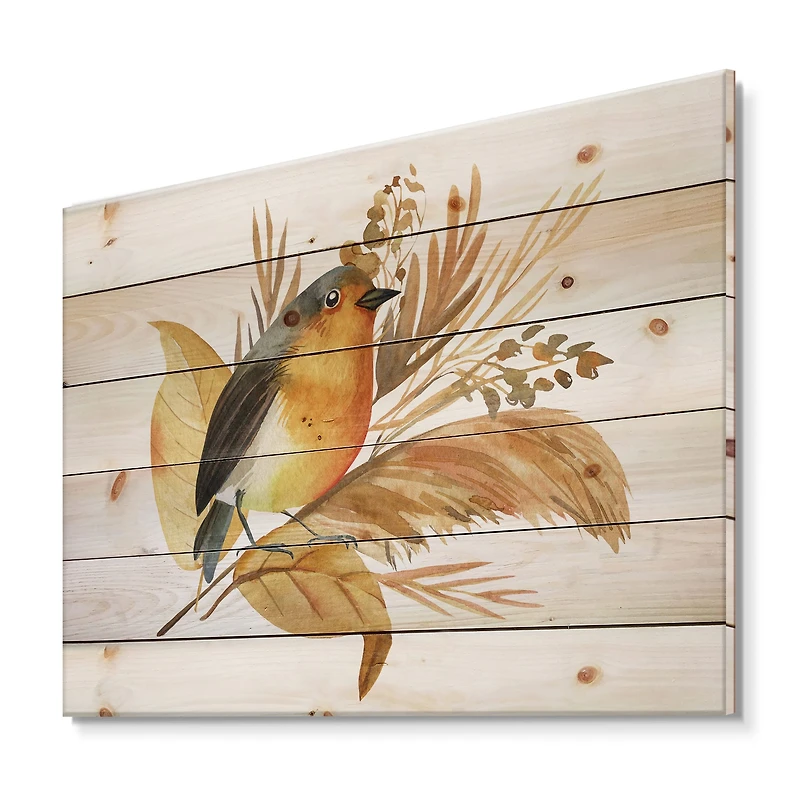 Designart - Robin Bird and Autumn Flowers in Chattanooga, TN