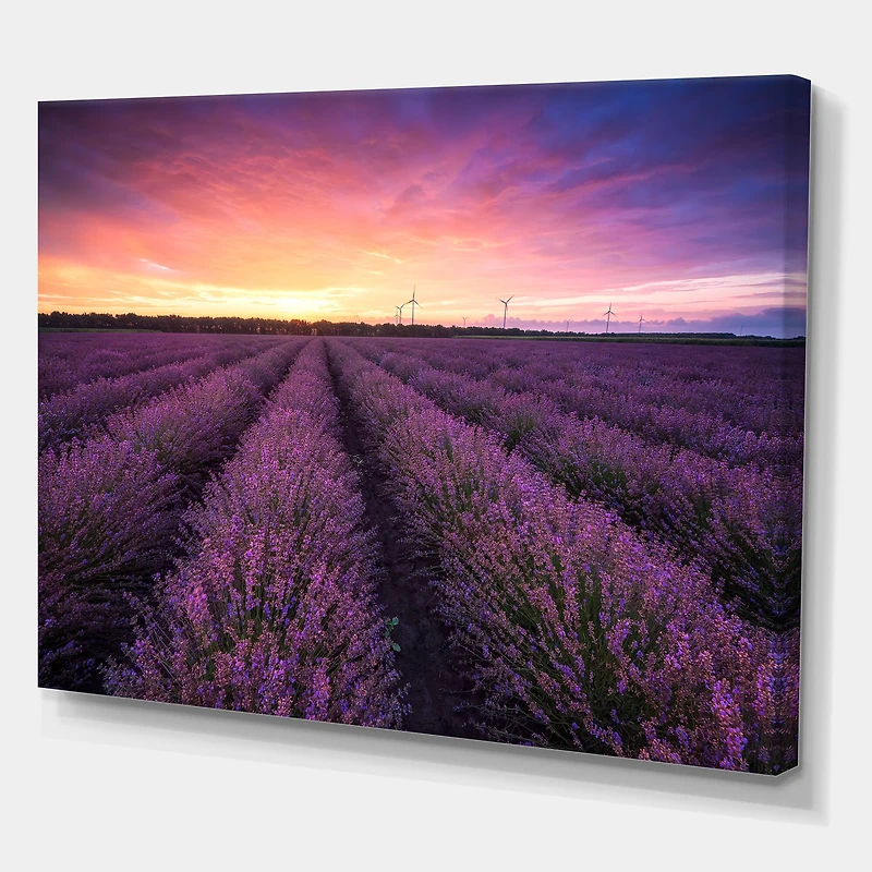 Designart - Sunrise & Dramatic Clouds Over Lavender Field XIII