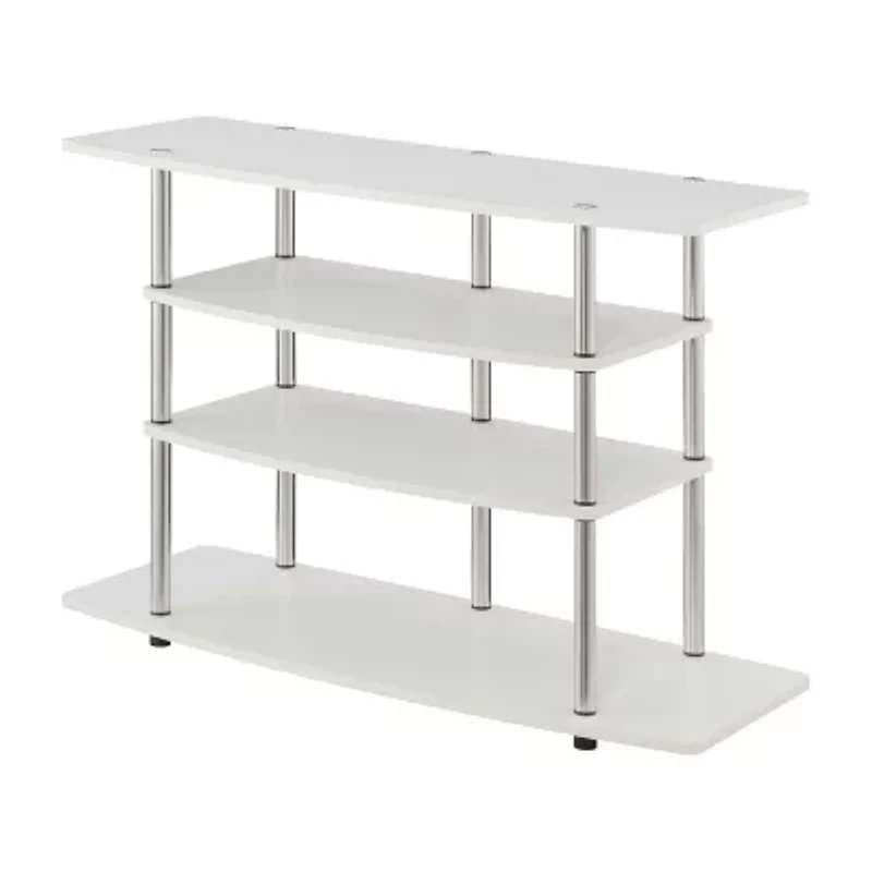 Refresh your entertainment space with the Designs2Go No Tools Wide Highboy 4 Tier TV Stand for TVs up to 46 Inches by Convenience Concepts. The wide open-concept design and contemporary style will fit perfectly in your living room, family room, or home study. This entertainment TV console features four ultra-wide tiers of shelving that provide ample space for all your entertainment essentials and decor. Not only is this a media center but it can also be used as a console or hall table offering more decorative or storage room. Each shelf is constructed of manufactured wood and finished in melamine overlay giving this TV stand a lifetime of durability. The shelving is supported by stainless-steel rust-resistant poles. Each pole includes plastic caps with rubber soles to help protect your floors. Assembling this stand is quick and easy with no tools needed. Complete your home look with sleek and modern coordinating pieces from the Designs2Go Collection by Convenience Concepts, each sold separately.