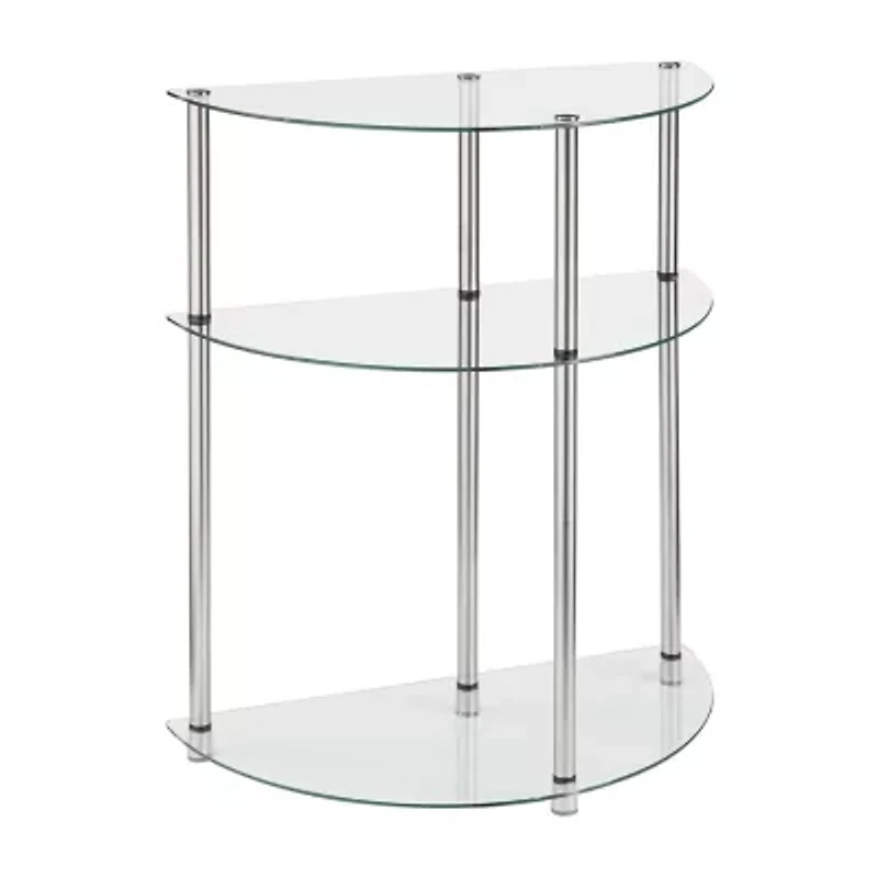 The designs2go classic glass 3 tier half-circle entryway table is the perfect complement to any living room decor. Featuring an open modern design that provides 3 spacious glass shelves for decoration, collections or art objects. Surely will provide years of enjoyment