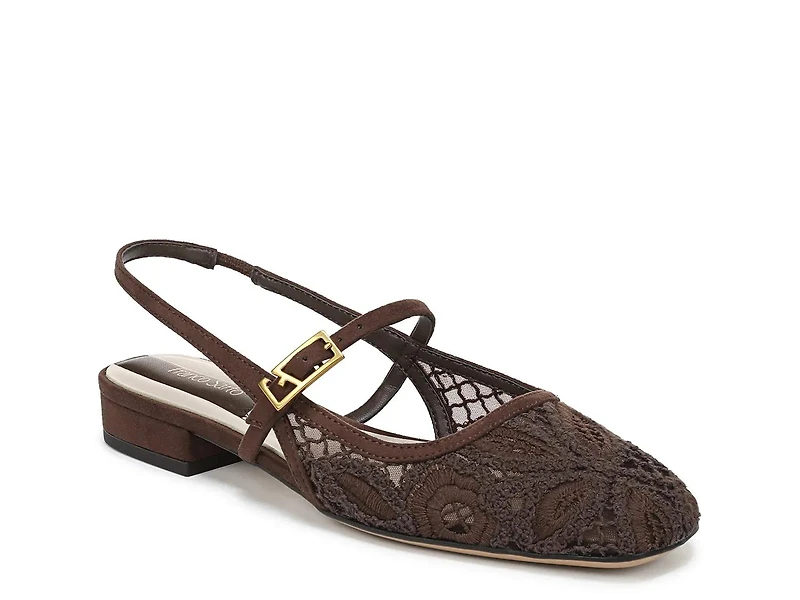 Add to your everyday wardrobe with the Destin flat from Franco Sarto. Crafted with delicate lace detailing, this square toe pair sports a sleek and strapping silhouette that evokes timeless elegance.